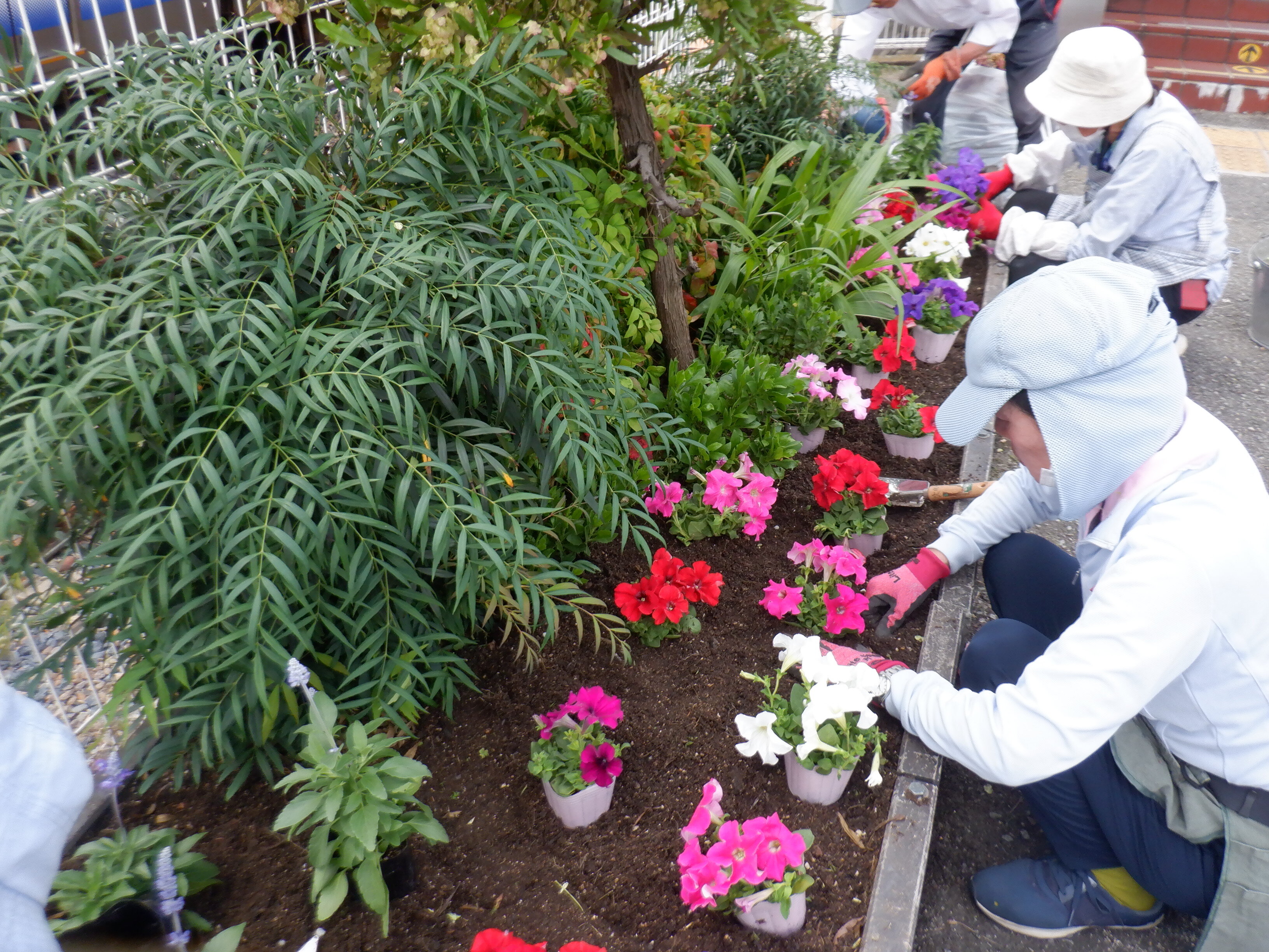 花いっぱいゃさかい西グループの皆さまのご協力で、花植え活動を行いました。